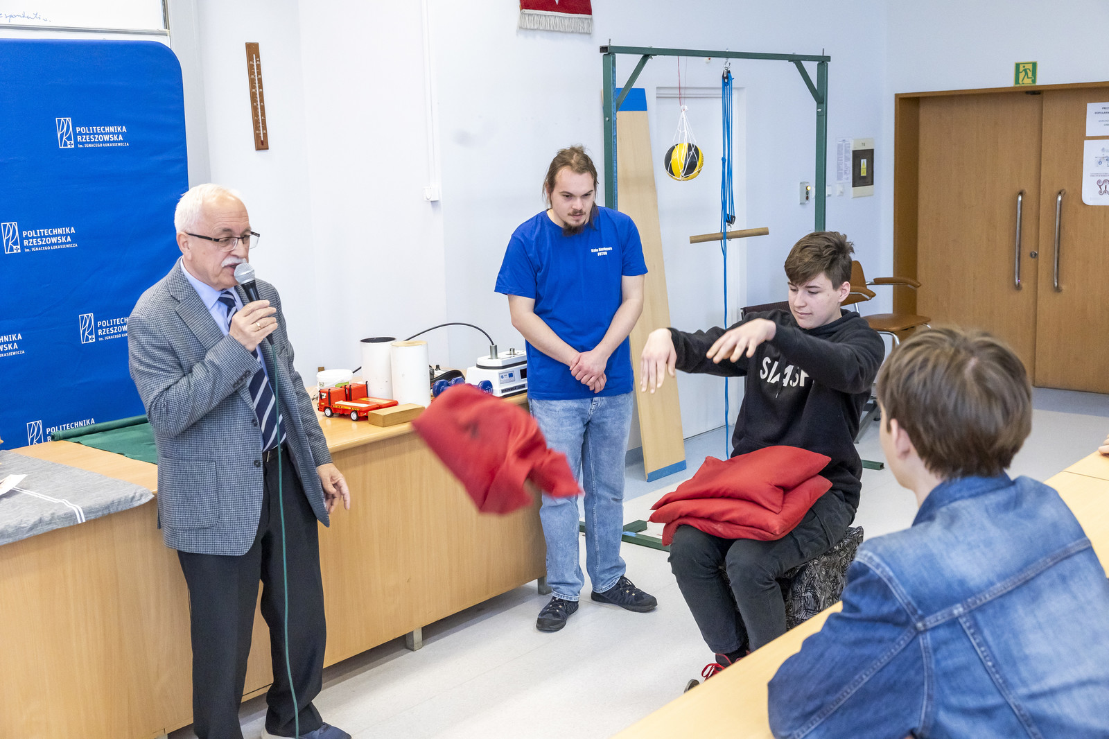 Wydarzenie uświetniły ciekawe pokazy przygotowane przez koła naukowe działające na naszej uczelni. Koło Naukowe „ESPRIT” z Wydziału Chemicznego zapewniło wiele „wybuchowych” niespodzianek, Koło Naukowe „FOTON” z Wydziału Matematyki i Fizyki Stosowanej zademonstrowało wybrane prawa i zjawiska fizyczne. W ramach pokazów uczniowie mogli również dowiedzieć się więcej na temat „Spintroniki – nadchodzącej rewolucji w elektronice”, o czym opowiedział dr inż. Michał Inglot z Wydziału Matematyki i Fizyki Stosowanej.