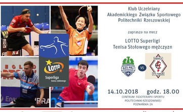 Akademicka drużyna tenisa stołowego Fibrain AZS Politechnika Rzeszów 14 października br. zmierzy się z Energa KTS Toruń.