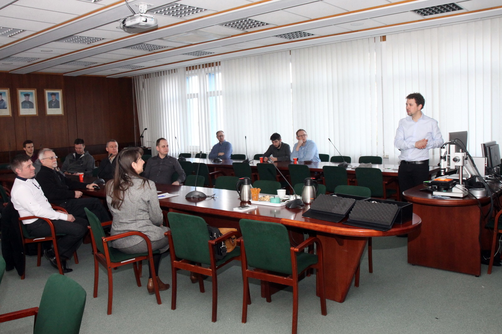 Spotkanie otworzył dr hab. inż. Jerzy Potencki, prof. PRz z Katedry Systemów Elektronicznych i Telekomunikacyjnych, zachęcając zebranych do wysłuchania i zapoznania się z możliwościami wielofunkcyjnego i najnowocześniejszego mikroskopu RH- 2000 3D Hirox. Prezentację poprowadzili Katarzyna Piekarska i Emilien Leonhardt z Hirox. Przybliżyli historię firmy oraz przedstawili zalety urządzenia: inspekcję na żywo zapisu filmów, tworzenie obrazu panoramicznego, kontrolę jakości, badanie powierzchni, dużą rozdzielczość. Mikroskop dokonuje m.in. pomiarów 2 i 3D oraz profilowania 3D, pomiaru powierzchni i objętości, łączenia obrazów 3D.