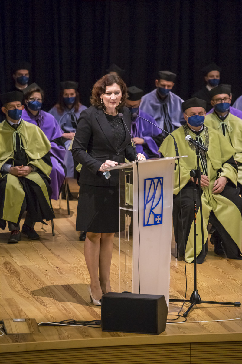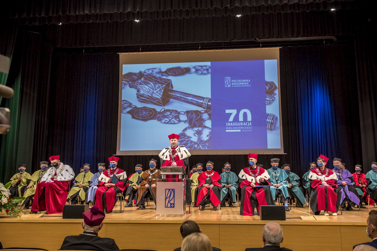 Ze względu na sytuację epidemiczną uroczystość inaugurująca jubileuszowy 70. rok akademicki na naszej uczelni odbyła się w warunkach zaostrzonego reżimu sanitarnego z zachowaniem wszelkich środków ostrożności. Pracownicy, studenci i sympatycy naszej uczelni mogli w niej uczestniczyć w relacji na żywo transmitowanej na kanale YouTube, uczelnianym Facebooku i na antenie Akademickiego Radia i Telewizji Centrum.