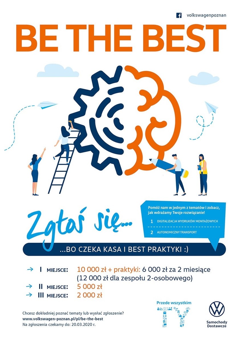 Zgłodzenia należy przesłać do 20.03.2020 r.  Więcej informacji na stronie: https://volkswagen-poznan.pl/pl/be-the-best