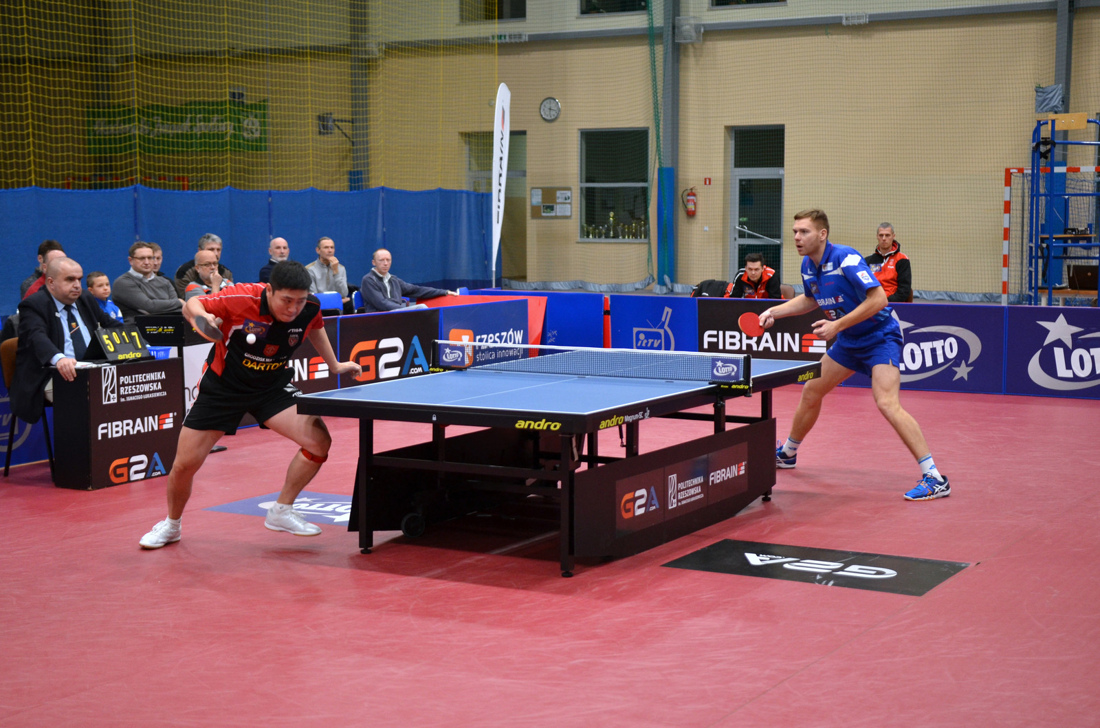 Gdy akademicy zobaczyli, że zagrają Gao Ning wraz z Gionisem i Górakiem, wiedzieli, że o jakiekolwiek punkty będzie bardzo ciężko. Losowanie było korzystne dla gospodarzy, którzy chcieli, aby Lewandowski zagrał z Górakiem. Pierwsza partia i pierwsze emocje. Doskonale usposobiony Lakeev wygrał dwa sety z Gao i w trzeciej partii miał trzy setbole, których nie wykorzystał. Gao doprowadził do wyrównania w setach i na myśl przyszło siatkarskie powiedzenie: kto nie wygrywa 3:0, ten… wygrywa 3:2! Vasilij udowodnił, że w tenisie stołowym funkcjonują inne reguły. Druga partia dla zawodnika gości Gionisa, który pokazał, że jego pozycja w światowym rankingu (35.) nie jest przypadkowa. Z nieźle grającym na obronę Gołębiowskim wygrał 3:0, imponując… bezbłędnym atakiem forhendowym. W trzeciej partii doszło do pojedynku mającego doskonały sezon międzynarodowy (wicemistrzostwo Europy w deblu) i ligowy (3. w rankingu supeligi) Góraka z Lewandowskim. Górak chciał udowodnić, że porażka w ostatnim czempionacie Polski z „Lewym” to był przypadek. Nic z tego. Lewandowski, po wspaniałym, obfitującym w wymianę widowiskowych top spinów pojedynku, wygrał 3:2 i jeden punkt był już w Rzeszowie! Na tym jednak nie koniec. Będący w gazie straniero miejscowych udowodnił umiejętność gry Rosjan przeciwko obrońcom. Grek zdobył w dwóch setach zaledwie 10 punktów i sensacja stała się faktem. Zwycięzcy pokazują, że tak wyrównanych rozgrywek ligowych w Polsce jeszcze nie było – każdy może wygrać z każdym, co dzieje się niemal w każdej kolejce. LOTTO Superliga jest nie tylko najmocniejszą, lecz także najbardziej wyrównaną europejską ligą.