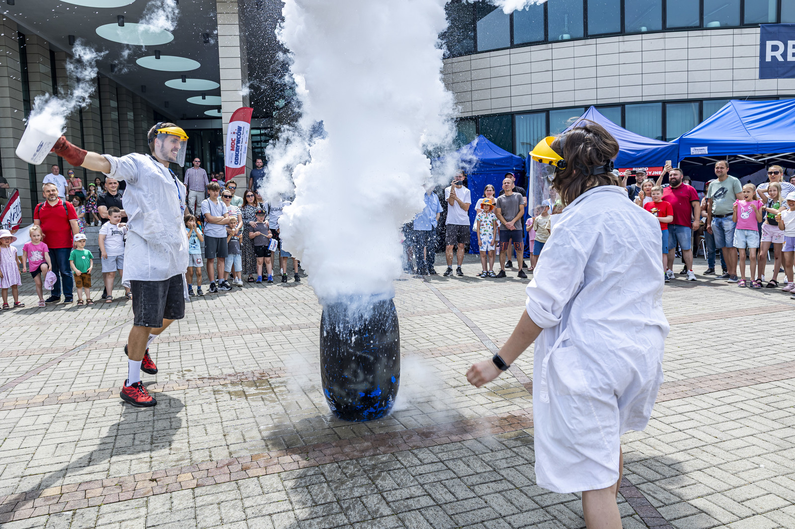 Na miłośników wybuchowych atrakcji czekali studenci Koła Naukowego „ESPRIT”, którzy przygotowali spektakularne pokazy chemiczne. Uczestnicy mogli również wysłuchać ciekawych wykładów –„Kosmiczną archeologię” opisywała Magdalena Ithilnar Stawniak, postać „Wyspiańskiego – Odkrywcy” przybliżyła Jolanta Bobala, a o „Prompt engineering, czyli jak dogadać się ze sztuczną inteligencją?” opowiedział Marcin Krawczyk. Mali i duzi odkrywcy spotkali się również z Magda „Cathia” Kozłowska zabrała małych i dużych odkrywców w podróż po galaktyce w ramach prelekcji nt. „Gwiezdnowojenna droga bohatera, czyli monomit w Gwiezdnych Wojnach”. Pokazy fizyczne Koła Naukowego FOTON („Jak fizyka wprawia świat w ruch”) oraz pokazy wysokich napięć i galeria lamp plazmowych Teslacoil jak zawsze przyciągnęły tłumy widzów. Na „Noc z gwiazdami”, czyli na finałowy pokaz pikniku zaprosili Małgosia Wilczak i Paweł Pasterz wraz z gościem specjalnym Maciejem Milczanowskim.