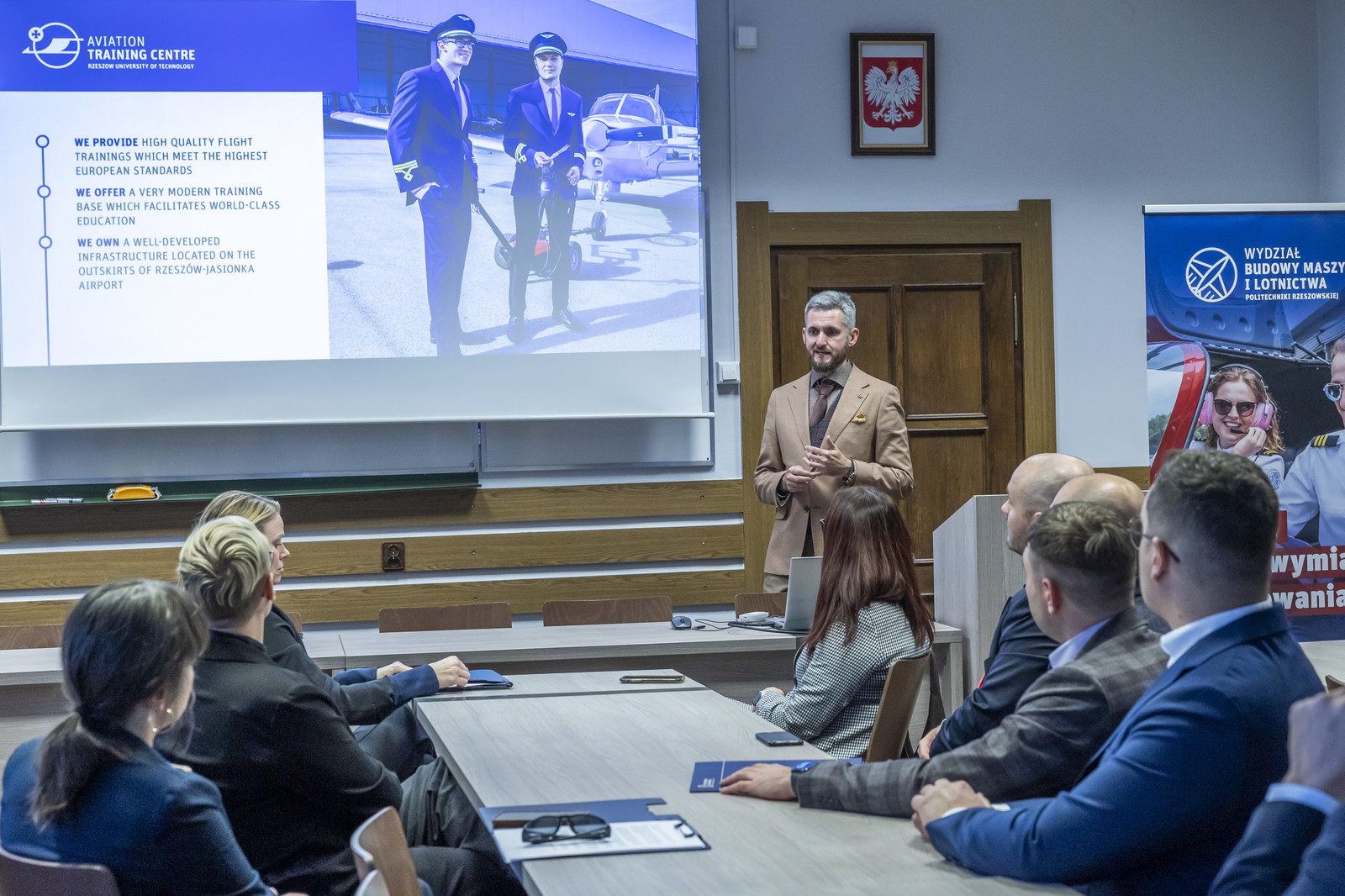 W uroczystości otwarcia uczestniczyli m.in. przedstawiciele Boeinga: Linda Hapgood, Senior Director Engineering Poland & Ukraine, Honorata Hencel, Managing Director Poland & Ukraine, Mariusz Lewandowski, Senior Manager Supply Chain & Government Engineering Programs, Iurii Prozheiko, Customer Support Senior Manager, Mateusz Rolewski, Communication and Branding Specialist, Mateusz Dzieszko, Software Engineering Manager, Damian Skowroński, Training Team Manager Workforce Strategy & Engineering Operations, Angela Hatch, Senior Manager Supply Chain Engineering (BGS), Meagan Wells, HRBP Sr. Manager - Engineering, Test, and Technology, a także przedstawiciele Politechniki Rzeszowskiej: Dziekan Wydziału Budowy Maszyn i Lotnictwa dr hab. inż. Adam Marciniec, prof. PRz, kierownik Katedry Awioniki i Sterowania prof. dr hab. inż. Tomasz Rogalski i dr inż. Piotr Grzybowski z wspomnianej katedry.